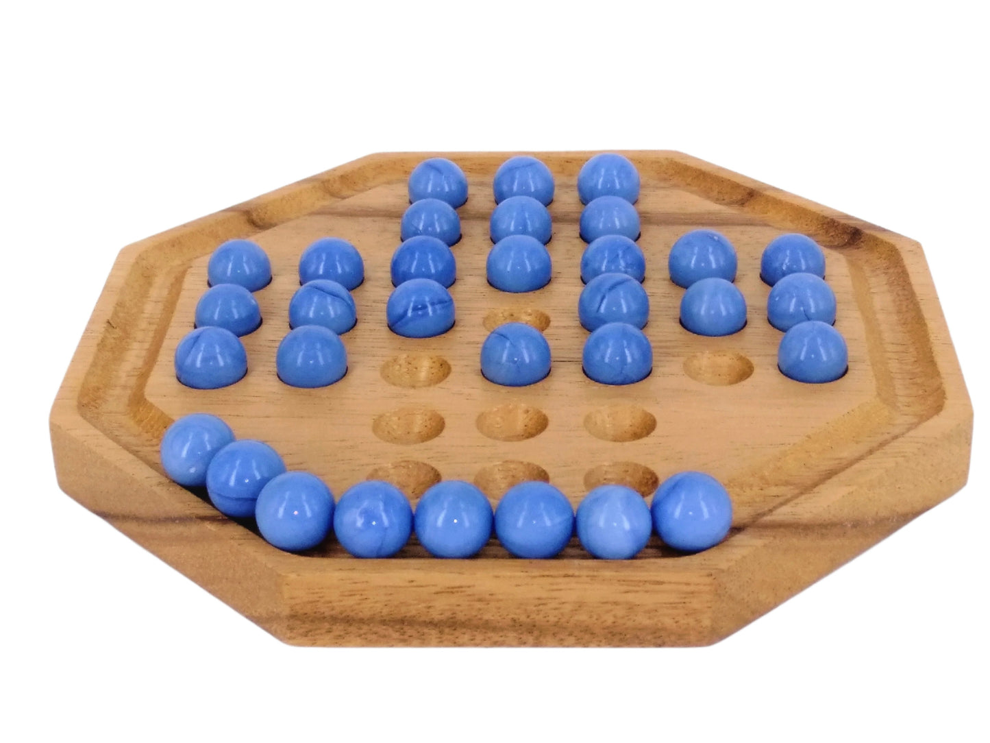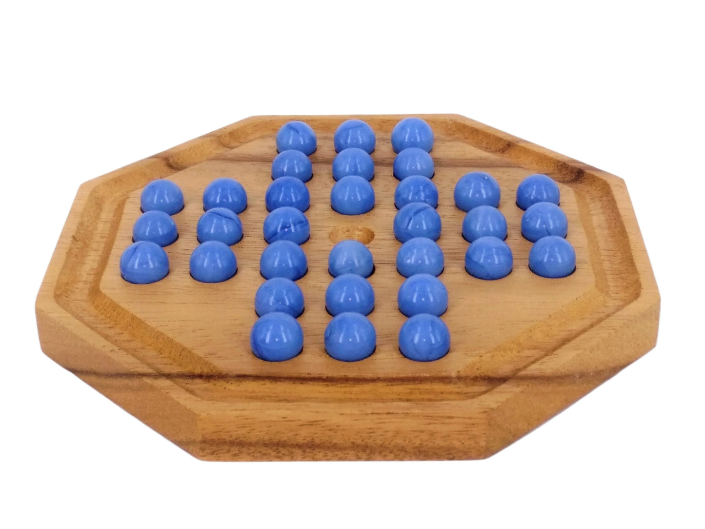 Another coffee table classic! An all time favourite, this game is for one player. The objective is to clear the board by jumping one adjacent peg at a time and removing the pegs until you only have one left in the centre! Good luck, not to many people can claim to have mastered this one! Remember it is a great effort to end up with 2 or 3, so don't beat yourself up, just keep trying! Stores away in box. Available with blue or white marbles only.